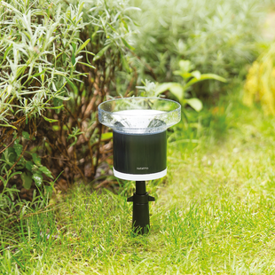 Übrigens muss dieser Regenmesser nicht manuell geleert werden – einfach aufstellen und die Messung kann beginnen.